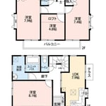 | 間取り | 4LDK | 建物面積 | 1階47.40㎡ 2階46.57㎡ |